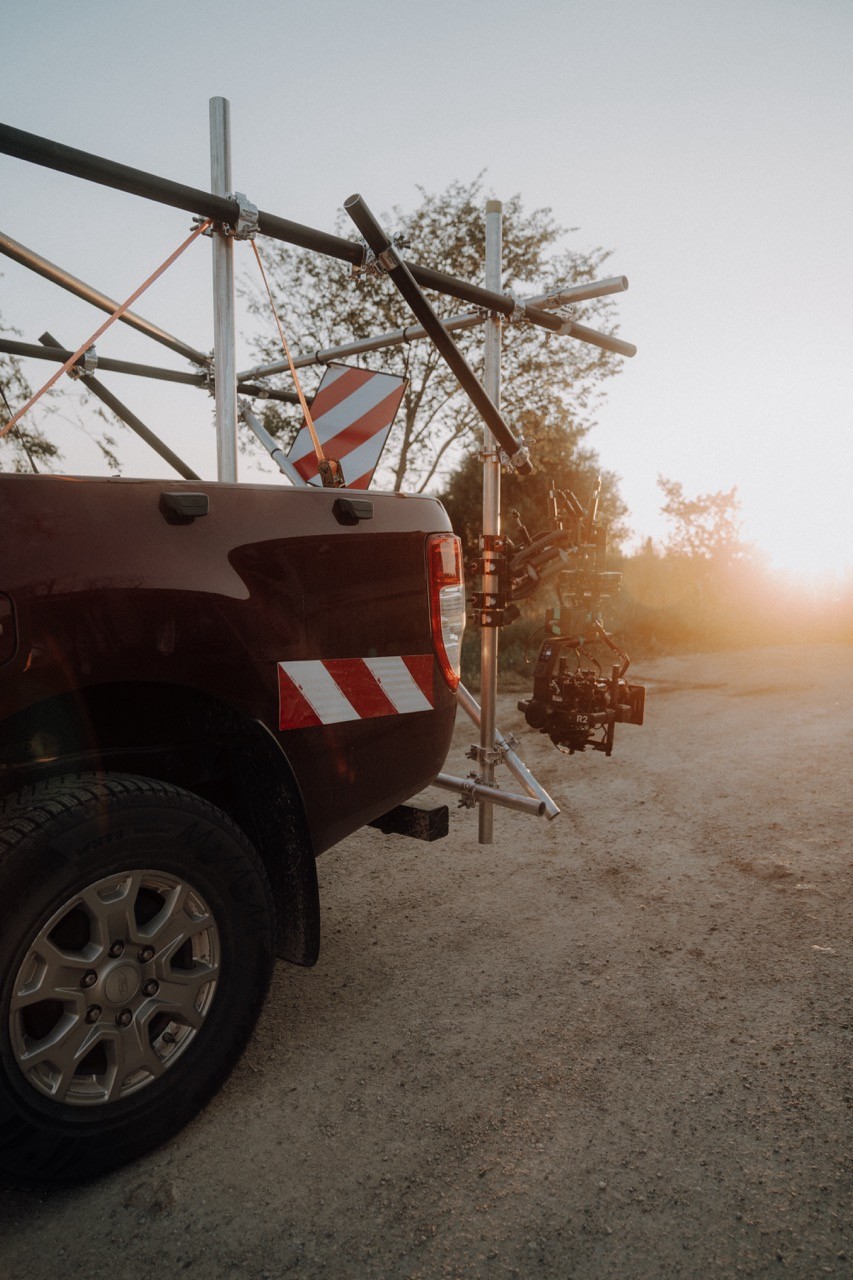 Carrigging, Car2Car Shots mit Kamerarig mit Gimbal an Pickup