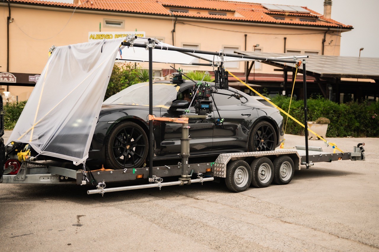 Carrigging, Auto mit Licht und Kameratechnik auf Anhänger